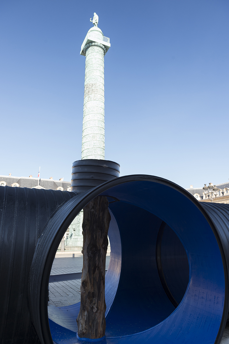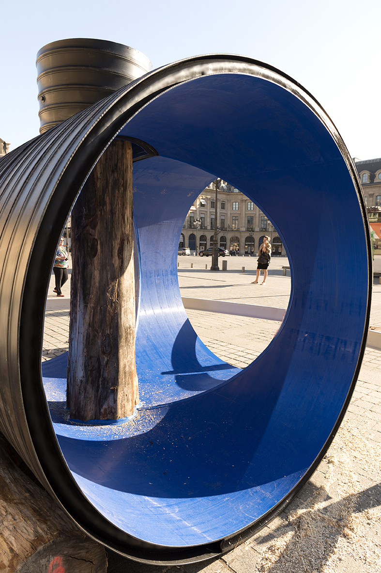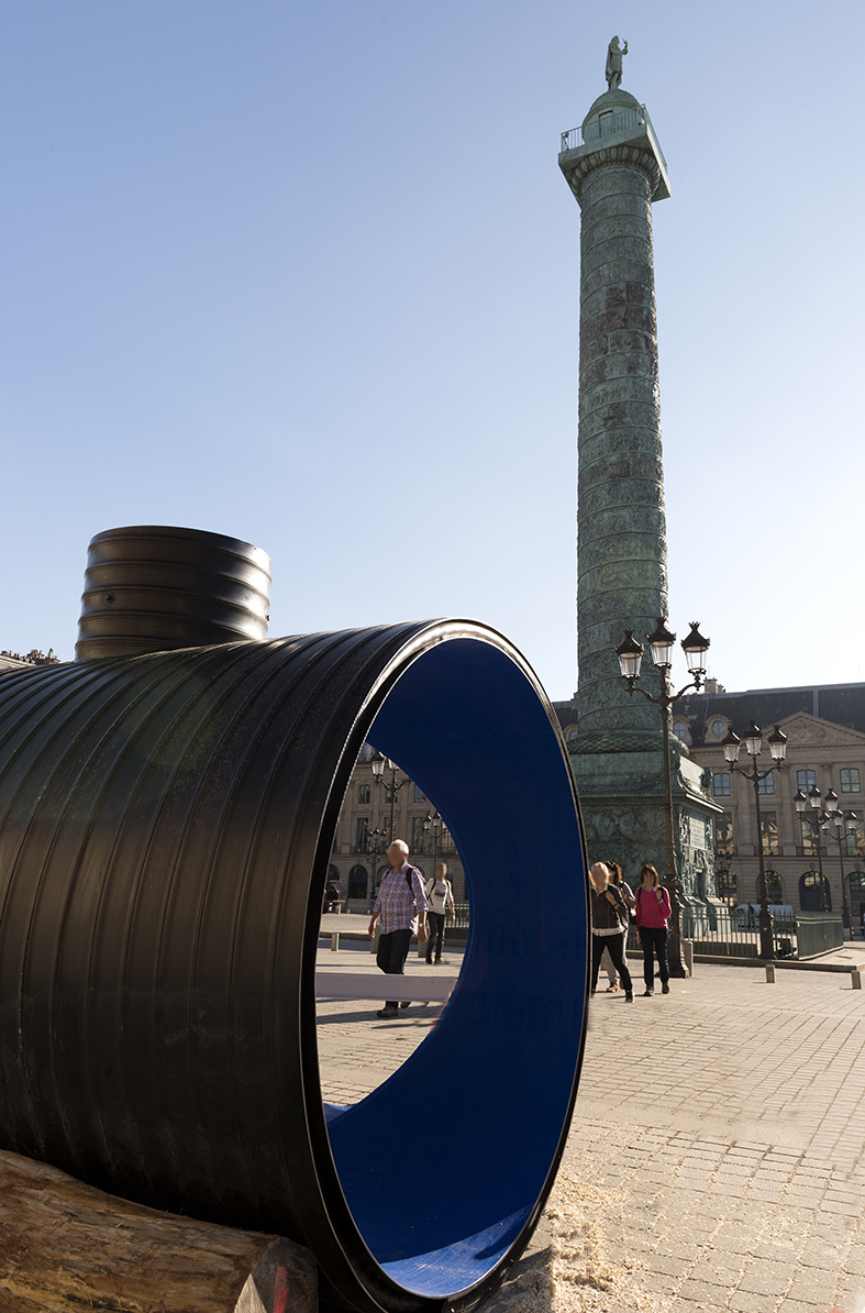 What an artwork can produce, in the best case, is ideas. Working at a large scale means working outdoors, in public, with other people. An artwork should generate something outside itself, and Place Vendôme is a place to intervene in the flow, interrupt the way people see things. The pipe is a kind of optical device, a hole you can see through.